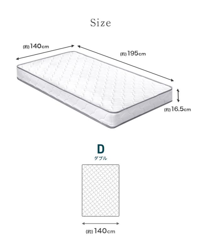 | サイズ | (約)幅140×長さ195×厚み16.5cm(ダブルサイズ) |