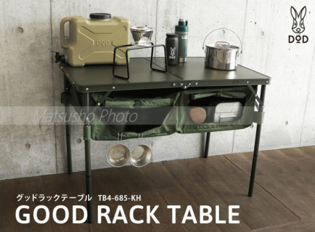 DOD テーブル アウトドアテーブル 折りたたみテーブル キッチンテーブル ローテーブル ハイテーブル キャンプテーブル 大容量収納 収納 車 荷室 棚 グッドラックテーブル TB4-685-KH カーキ