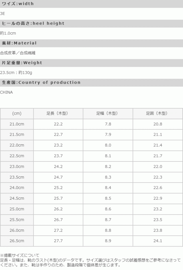 足長(木型):22.2cm/足幅(木型):7.8cm