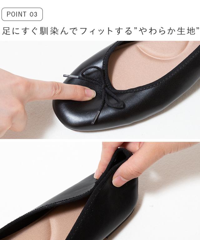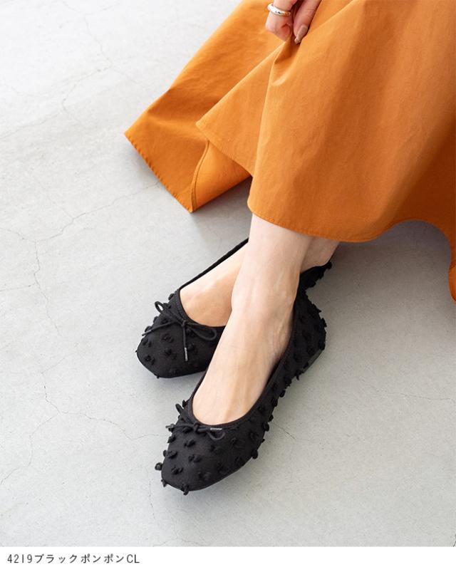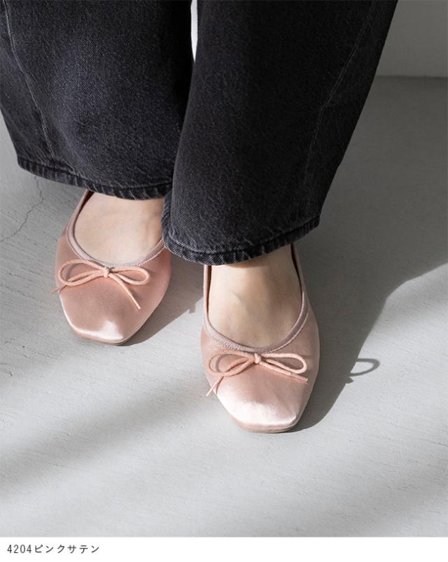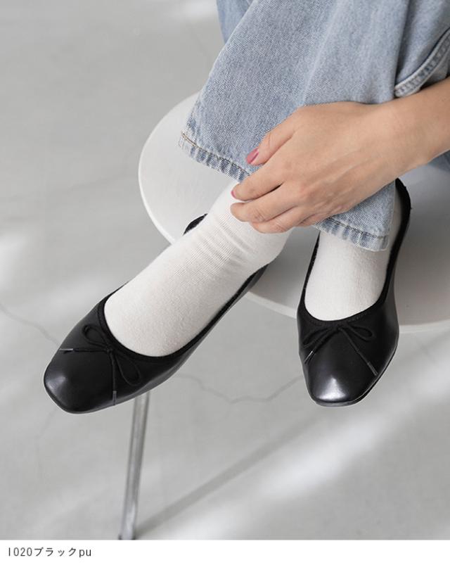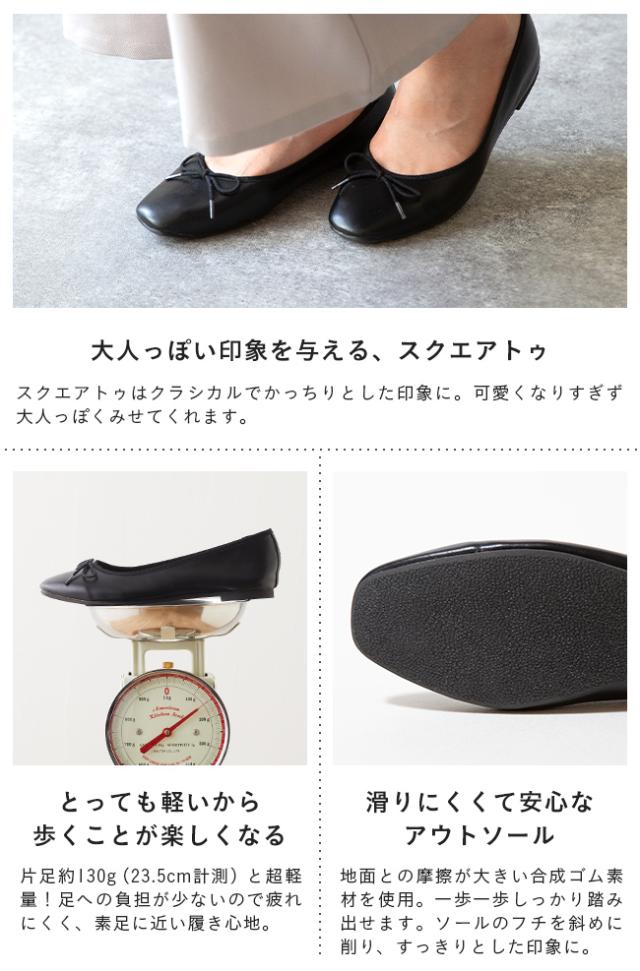 バレエシューズ レディース リボン スクエアトゥ フラットシューズ パンプス 履きやすい 痛くない 黒 春 夏 ふわカル 送料無料
