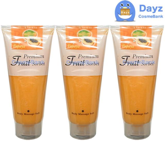 プレミアム フルーツソルベ ボディマッサージソルト パパイヤ 500g 3点セット | フルーツ酸・死海の塩配合 ボディソープ ボディケア ボディソルト