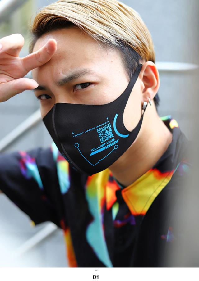 CLUB NO1Z 洗える マスク 布マスク メンズ レディース 春夏秋冬用 黒 クラブノイズ 立体マスク 即納 おしゃれ かっこいい バイアステープ 柄 サイバーパンク 近未来 ネオンカラー b系 ヒップホップ ファッション ダンス ストリート系 ブランド CN-MK-CO-072