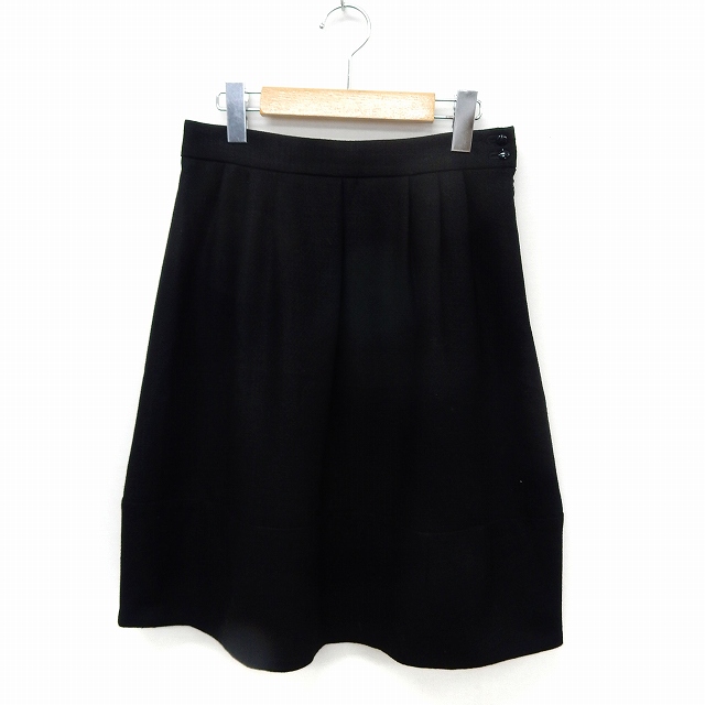 【中古】レイビームス Ray Beams スカート タイト 膝丈 タック サイドジップ シンプル 1 ブラック /ST29 レディース