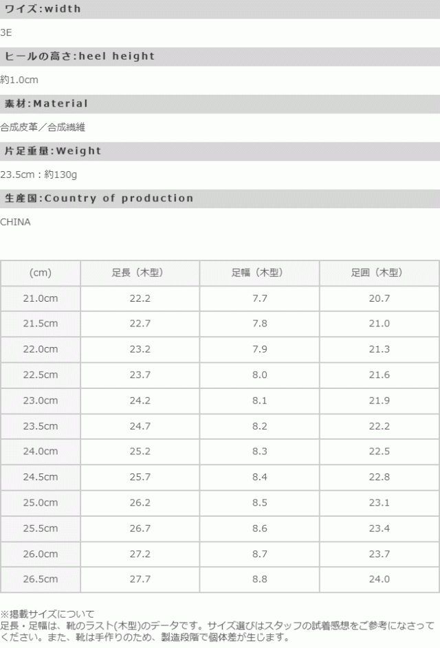 ※掲載サイズは、靴のラスト(木型)のデータです。