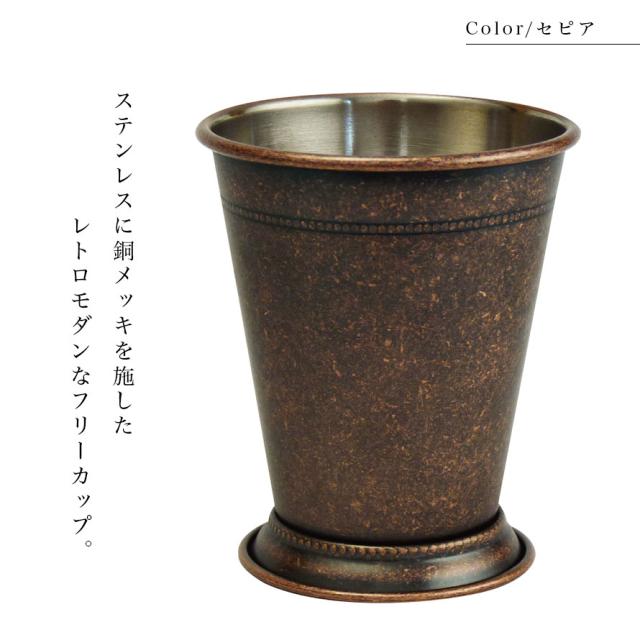 ステンレスに銅メッキを施したレトロモダンなフリーカップ。