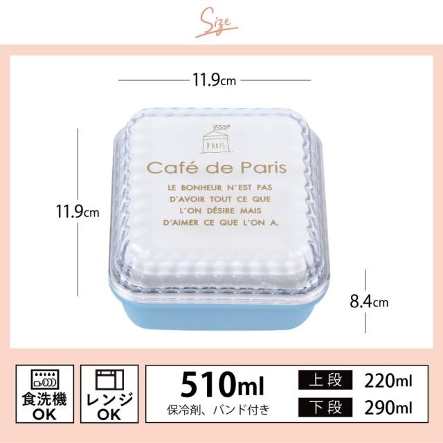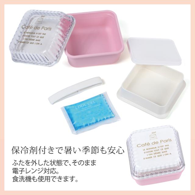 弁当箱 お弁当箱 レディース 女子 子供 大人 抗菌 2段 保冷剤 保冷剤付き 二段 食洗機対応 レンジ対応 おしゃれ かわいい cafe de Paris スクエアEMランチ 抗菌加工 プラスチック製 樹脂製 日本製 BPAフリー