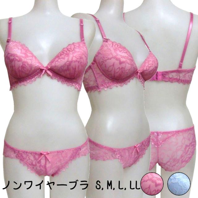 総レースノンワイヤーブラジャー&ショーツセット 総レース ノンワイヤー ブラジャー ブラ ショーツ セット ブラセット ラメ セクシー ランジェリー S M L LL レディース 女性 下着 メール便送料無料