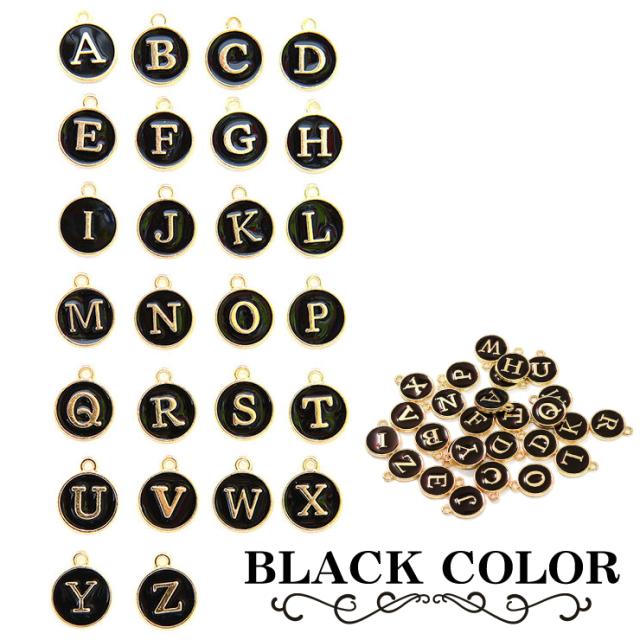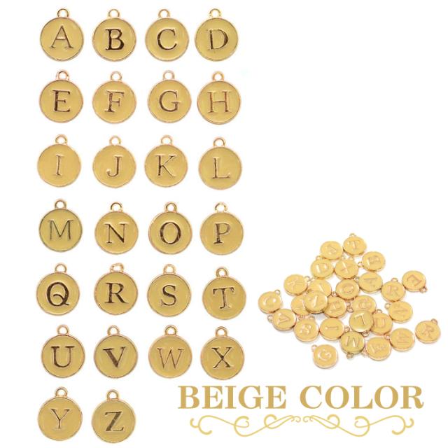 ゴールドの縁取りとアンティーク風の文字が上品なイニシャルチャーム。