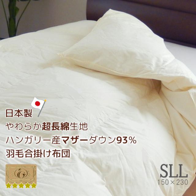 日本製 羽毛布団 合い掛け シングルスーパーロング ハンガリー産マザーダウン93% 超長綿やわらか側生地 エクセルゴールドラベル 抗菌防臭
