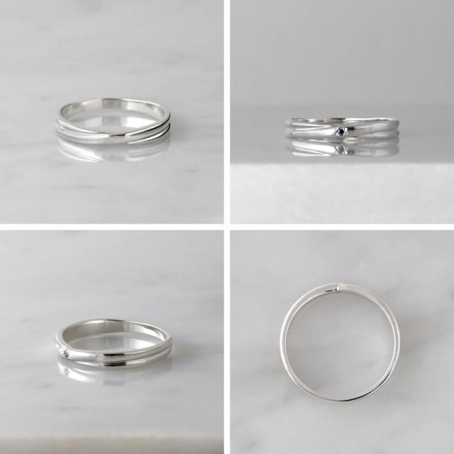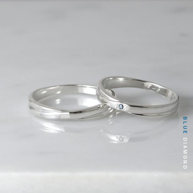 クロッシングデザインの大人っぽい上品なシルバーペアリング。 男性側はプレーンタイプでシンプルな印象、女性側はブルーダイヤモンドをあしらい華やかな印象です。 ブルーダイヤモンドには「永遠の幸せ」や「絆を深める」っといった意味があり、 サムシングブルーのジュエリーとして人気があります。幸せな結婚のお守りとしてもオススメです!