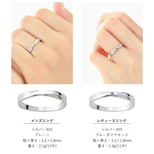 ペアリング 刻印 シルバー ブルーダイヤモンド(石付き)とプレーン(石なし)のペア 結婚指輪 マリッジリング ギフト プレゼント 誕生日 記念日 ホワイトデー クリスマス 彼女 彼氏 妻 夫 高校生 お揃い カップル