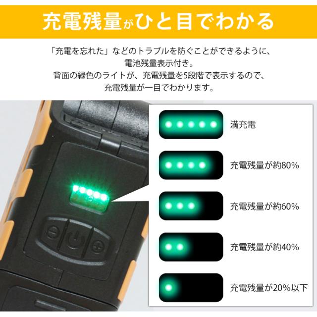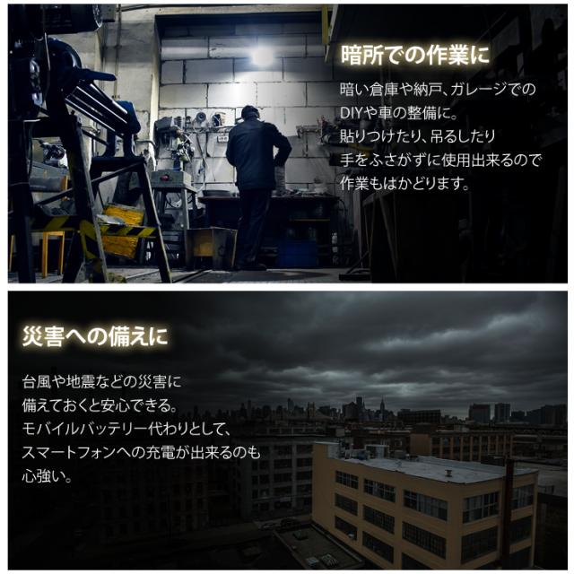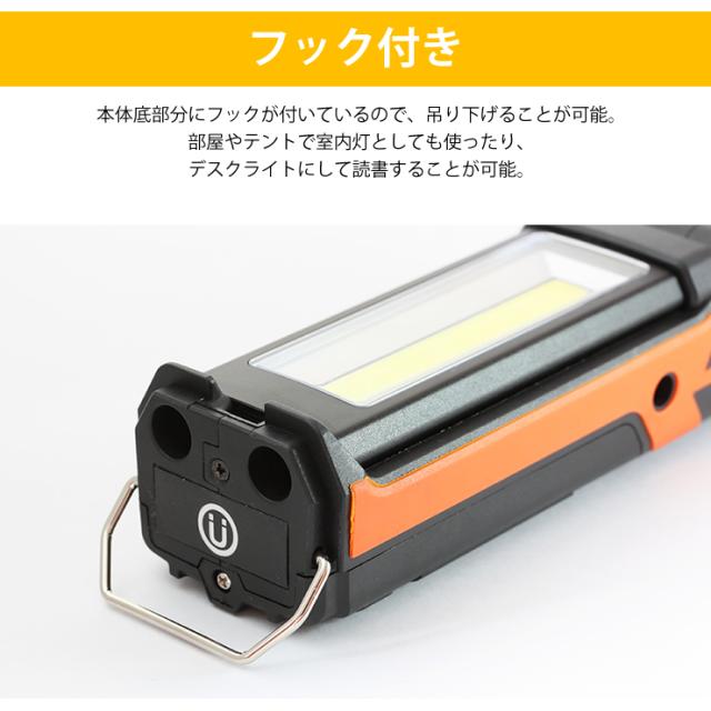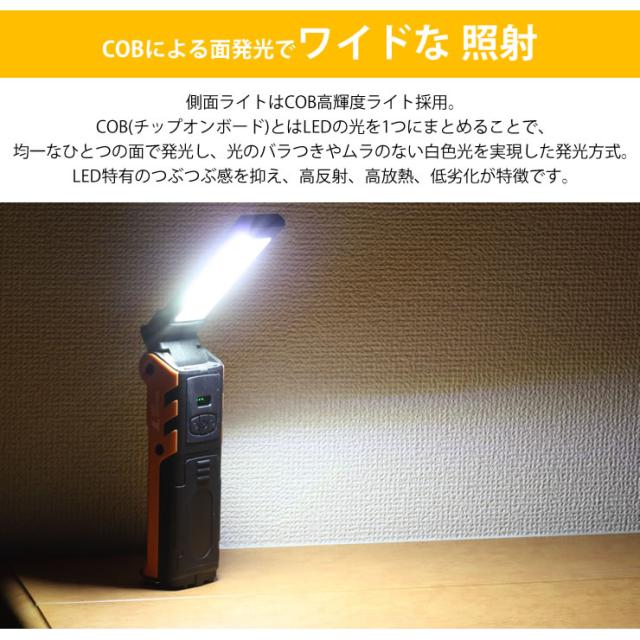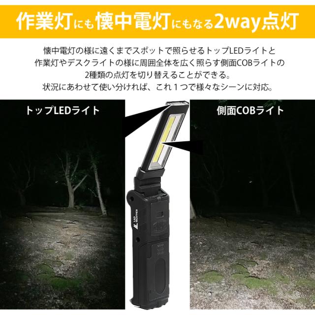 LEDライト 充電式 ワークライト ハンディライト 作業灯 2WAY点灯 COBチップ仕様 折り畳み式 スマホ充電 災害/震災/防災 グッズ アウトドア/キャンプ