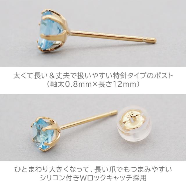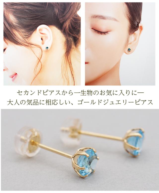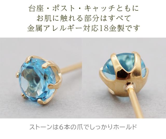 セカンドピアス レディース つけっぱなし K18 軸太 天然石 ブルートパーズ 18K 18金 【品質保証書つき】 日本製 片耳 金属アレルギー 特針 プレゼント
