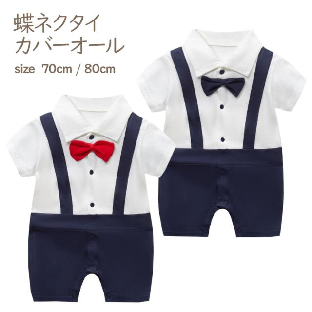 在庫処分 蝶ネクタイ 半袖 カバーオール ベビー フォーマル 男の子 ロンパース 蝶ネクタイ付 半袖 スーツ 誕生日 七五三 初節句 入園式 ギフト 出産祝い プレゼント