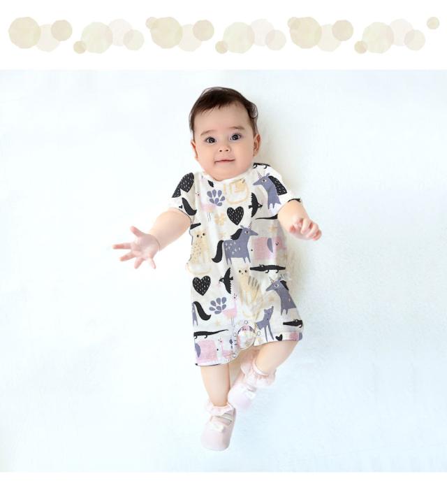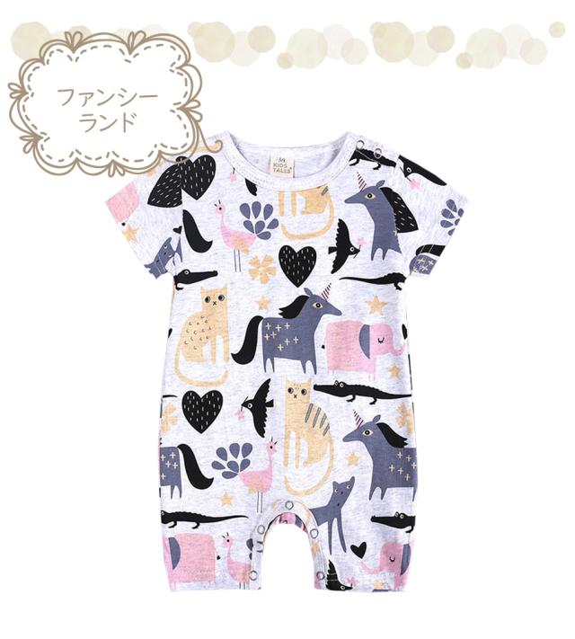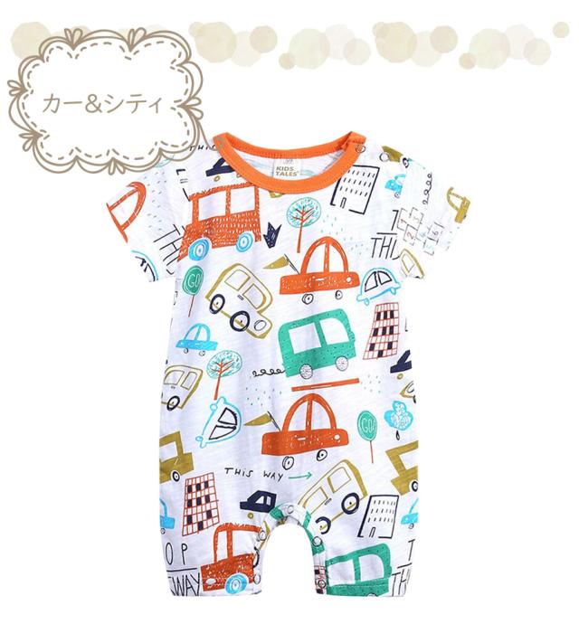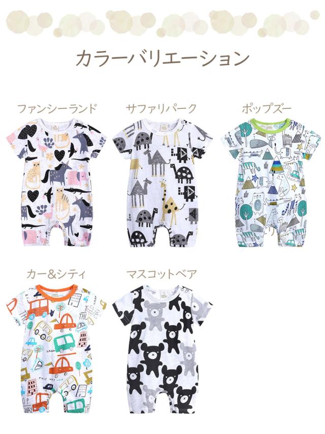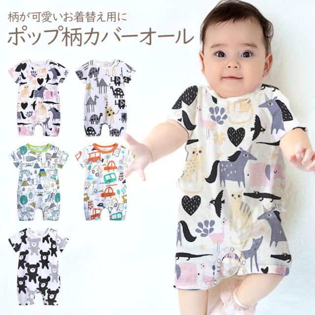 総柄 半袖 カバーオール ベビー 夏服 男の子 女の子 ロンパース 誕生日 保育園 お着替え 70 80 90cm ギフト 出産祝い プレゼント