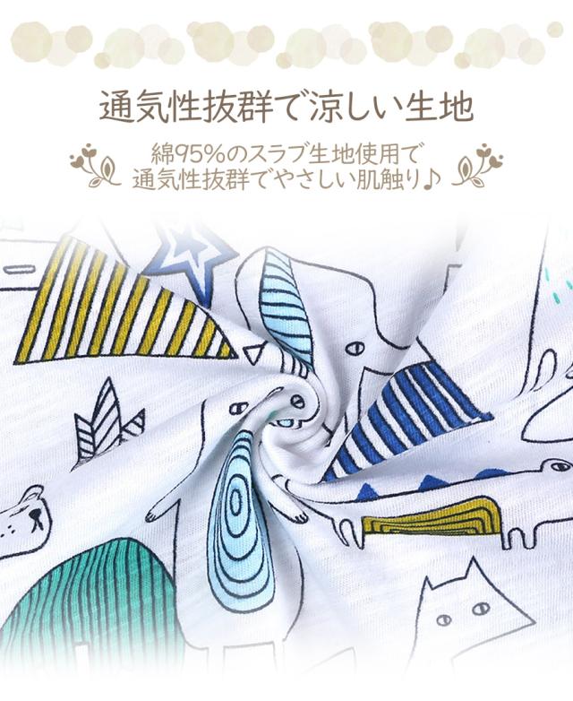 通気性と肌触りの良いスラブ生地使用で赤ちゃんのお肌にも優しい肌触り。