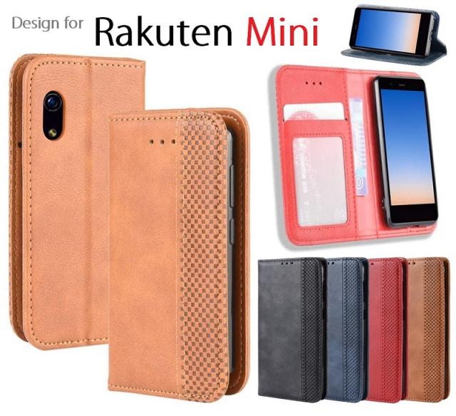 送料無料 Rakuten Mini/楽天 ミニ専用 本革風 高級PUレザー TPU 手帳型 保護ケース スタンド機能 マグネット付 カード入れ付 (ブラック ネイビー ブラウン レッド)4色選択