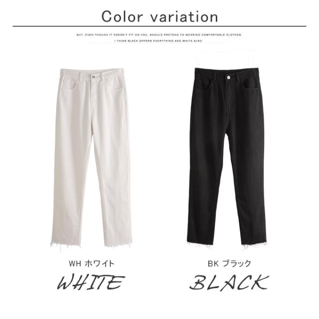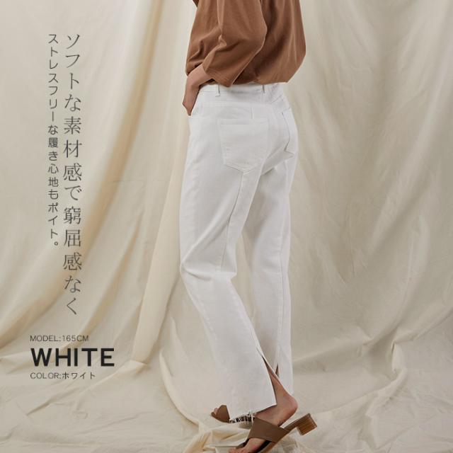 【500円OFFクーポン対象商品】 karei 在庫処分 デニムパンツ レディース バックスリット パンツ デニム 縦ライン 細身効果 ポケット付 切りぱなし ボトムス 美脚 03BL8150