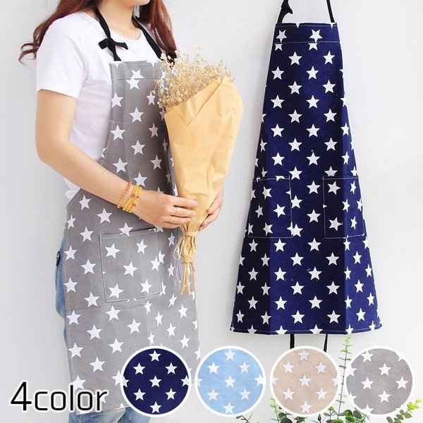 星柄エプロン Star おしゃれ ワンピース 保育士 男女兼用 男性 メンズ 女性 レディース かわいい 母の日 スター絵柄 前掛け