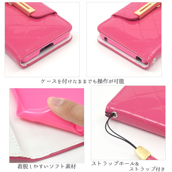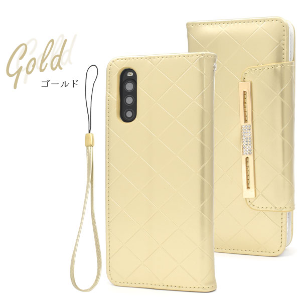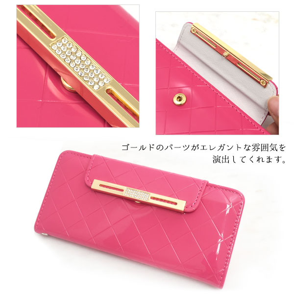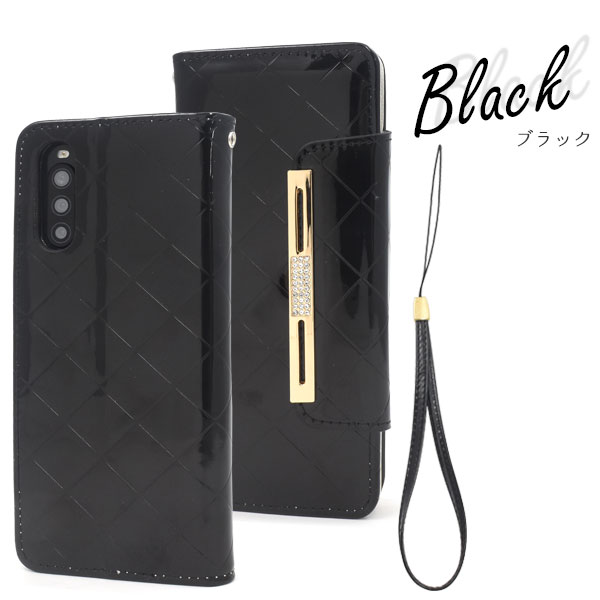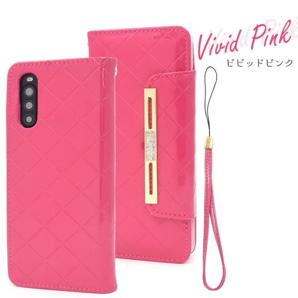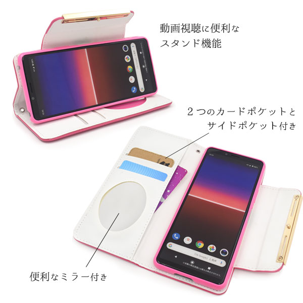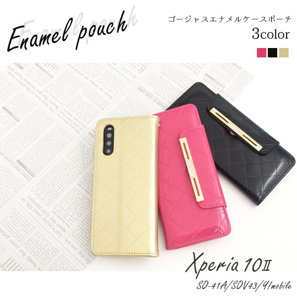 スマートフォンケース Xperia 10 II SO-41A SOV43 au Y!mobile用 手帳型 エナメルケース オシャレ auスマホ 携帯ケース 装着簡単 上品 黒 ピンク 金色 フェミニン 可愛い コンサバ 華やか スマホカバー 保護カバー 可愛い ラブリー キュート ミラー 鏡 磁石なし ゴージャス