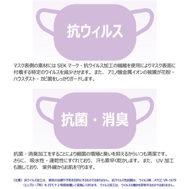 洗える機能性マスク SEK認証抗ウイルス加工繊維使用 細菌の増殖と臭い抑制 清潔 アミノ酸金属イオン皮膜 花粉 ハウスダスト カビ菌 ガード
