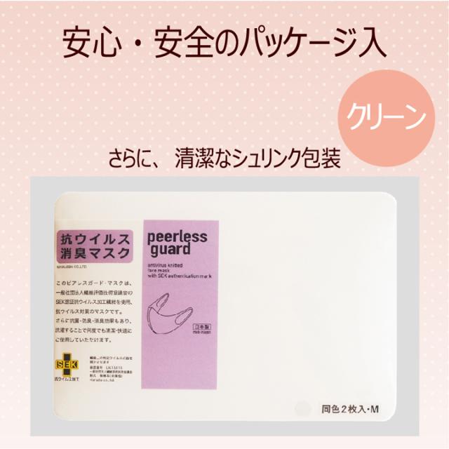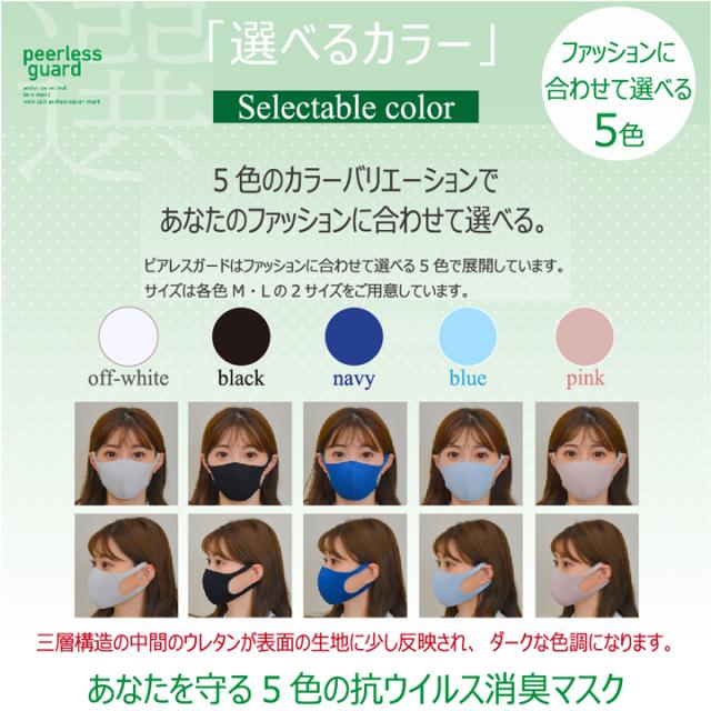 抗ウイルス 消臭 抗菌 日本製 防臭 洗える マスク 在庫有り ピアレスガード (2枚組)×1箱 新感覚 抗ウイルスマスク 同色同サイズ2枚入 綿100% メール便送料無料 国産 UV加工 紫外線対策 保湿効果 吸水性 速乾性 peerless