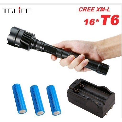 懐中電灯 led 強力 充電式 80000Lumens XML 16 * T6 フラッシュライトランプ+ 3 * 18650バッテリー+チャージャー