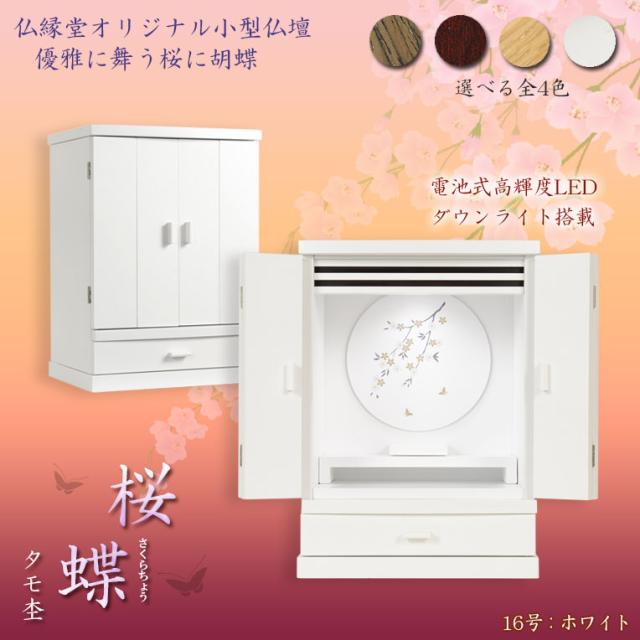 現代調モダン仏壇【天然タモ杢 幻想的で優美な絵柄:桜蝶(さくらちょう)16号・白(ホワイト)】タモ材・LED照明付き・送料無料