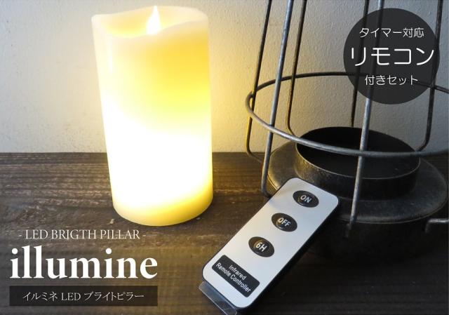 LEDキャンドル イルミネ LEDブライトピラー リモコンセット ワックス仕上げ 電池式 キャンドルライト タイマー機能付き 無香タイプ