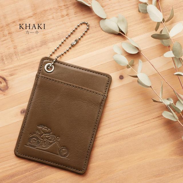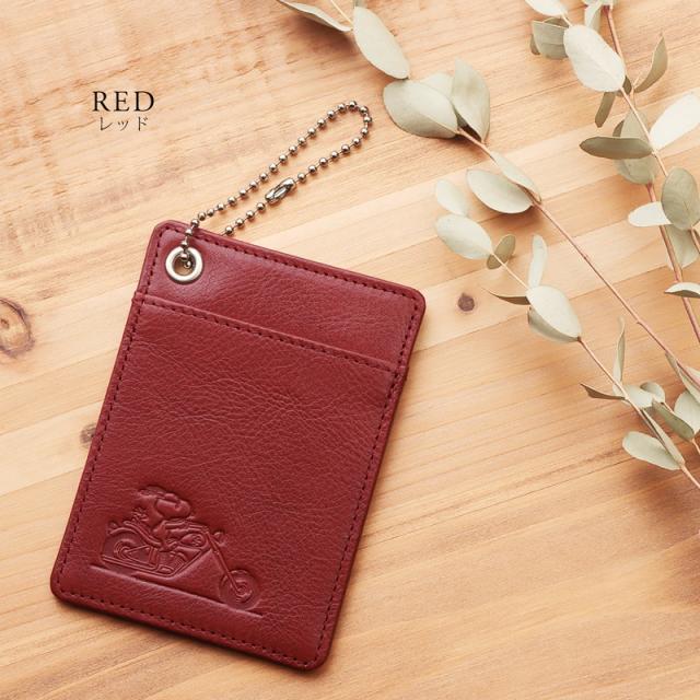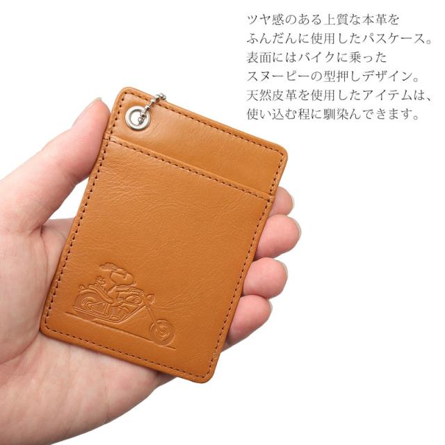 商品カテゴリ:パスケース 定期入れ スヌーピー PEANUTS 型押し RIDER 本革 おしゃれ
