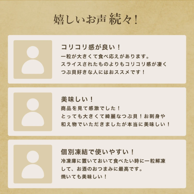 - 今まで大きくコリコリして美味しかったので何回か購入していました。今回はずいぶん小ぶりでしたが、美味しかったです