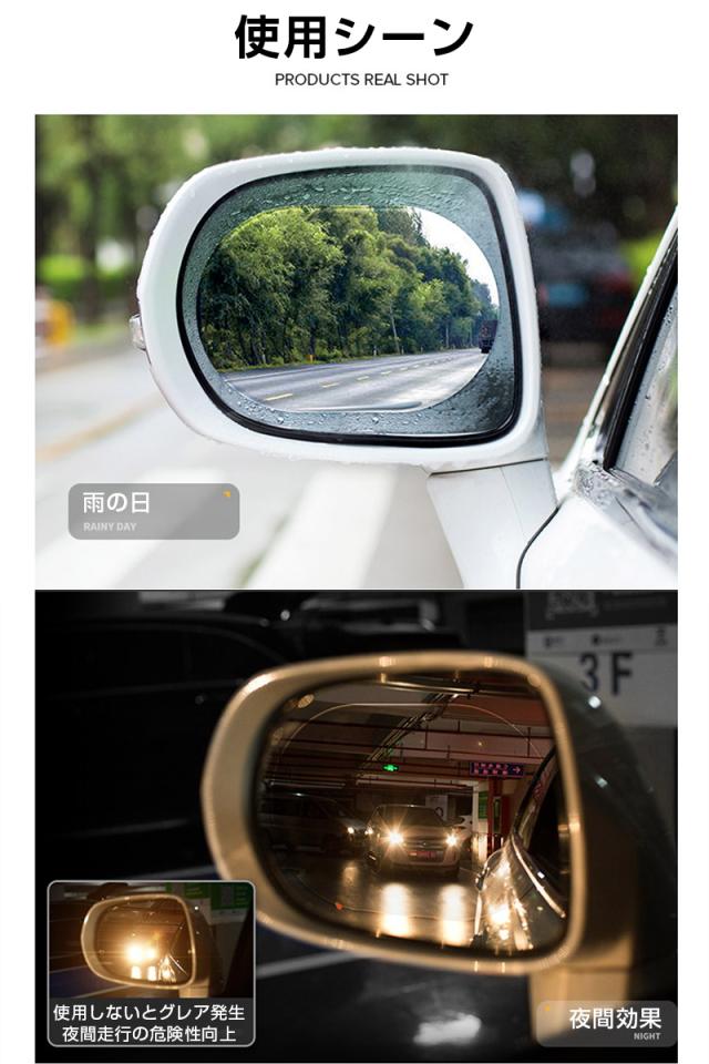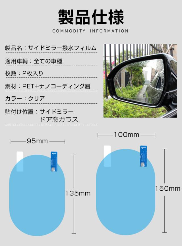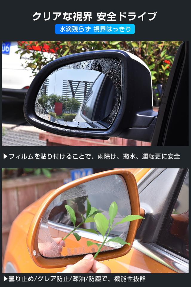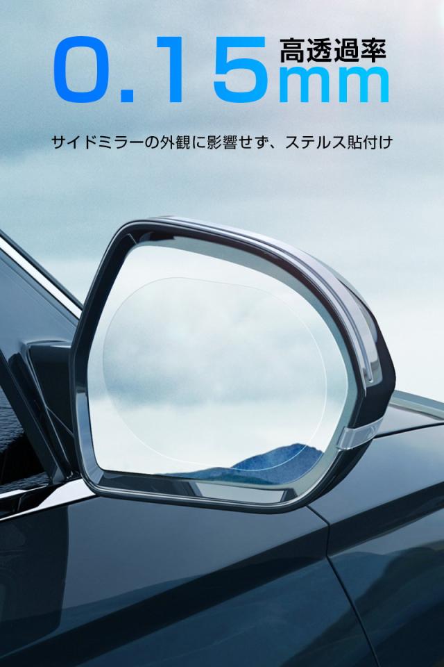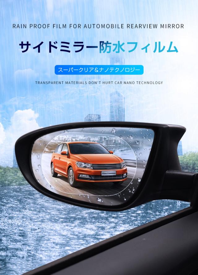 サイドミラーフィルム 2枚入り 高透過率 透明 雨除け 汎用型ドアミラー 防滴防塵フィルム 安全運転 光反射防止 グレア防止 透明 2枚セット