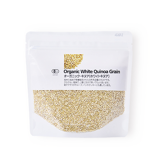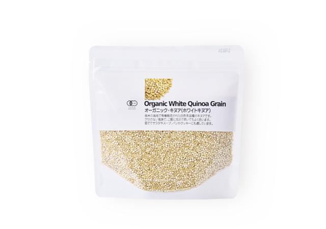 ナチュラルキッチン オーガニック・キヌア(ホワイトキヌア) 食事で取り入れなければならないアミノ酸の9種をすべて含む、穀物としてほぼ完ぺきなキヌア。 栄養素の高い玄米と比べても、カルシウム、カリウム、鉄分などのミネラルや 食物繊維、良質な脂質において、大幅に上回る値を誇ります。 さらに植物性の女性ホルモン(エストロゲン)やビタミンB1、B2、Eなど、 粟のように小さなその粒の中に、計り知れない量の美と健康への栄養素がつまっています。 その完成度から、宇宙食として評価されているという実績も。 海外では今やスーパーフードを代表する食べ物の一つとして大きく注目されているキヌア。 その理由は、その極めて高い栄養価に対して、低カロリー・低糖質なところにもあります。 ナチュラルキッチンのキヌアは、原産地南米の高地で有機栽培されたホワイトキヌア。 クセのない風味で、ごはんと一緒に炊いてもよく合う食べやすさです。 ダイエットや日々の健康維持にうってつけ。 美を意識する方に、とくにおすすめしたいスーパーフードの1つです。 | |||||||||||||