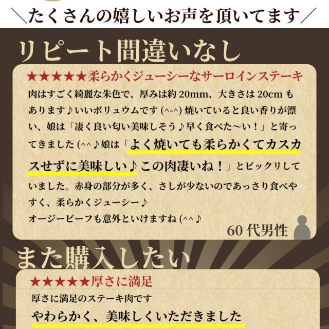内容量:サーロインステーキ2枚セット(250g×2枚)産地:オーストラリア産又はアメリカ産