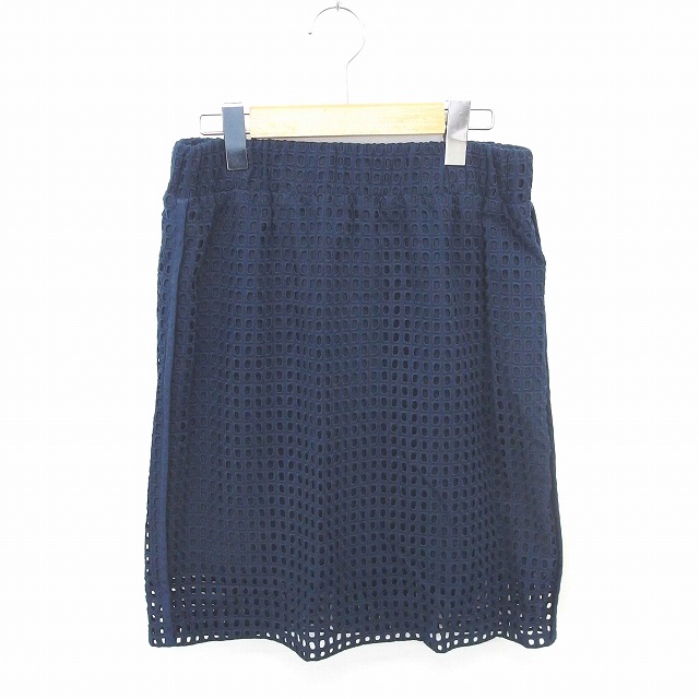【中古】イエナ IENA スカート タイト レース ひざ丈 綿 コットン 38 紺 ネイビー /TT29 レディース