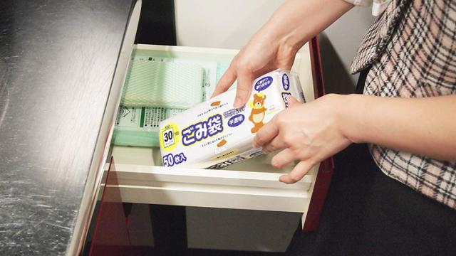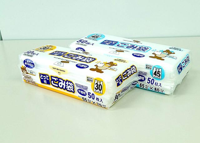 ●取っ手付きで結びやすいゴミ袋。