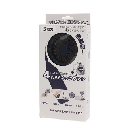 | 説明 | 首掛け・ハンディ・卓上・巻きつきの4スタイルのハンディファン☆シーンによって使い分け(卓上扇風機、首掛け扇風機、ハンディ扇風機、巻きつき扇風機)3段階風量・USB充電式・髪の毛巻き込み防止ネット付きで安全にも配慮しました。 |