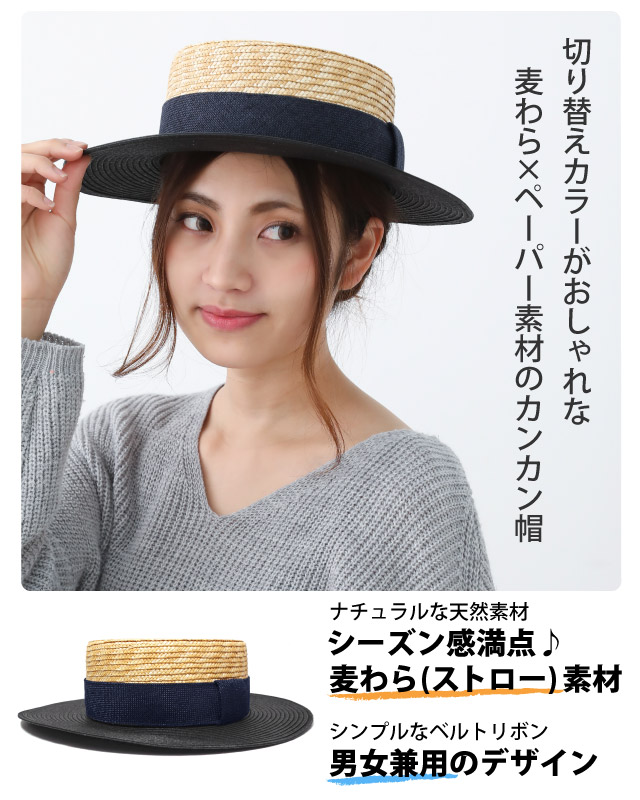 シーズン感たっぷり!本物の麦わら素材と、軽くて丈夫なペーパー素材のつばを組み合わせたカンカン帽。