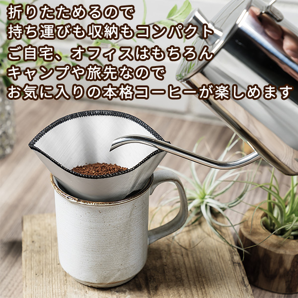 送料無料 折りたためる 薄い ステンレス コーヒー フィルター(Stainless Coffee Filter)‐ペーパー不要 ドリッパー 繰り返し コンパクト キャンプ オフィス ペーパーレス