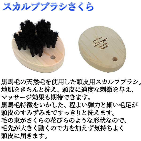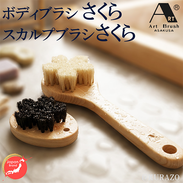 浅草アートブラシ 正規品 白馬毛 ボディブラシ『さくら』+黒毛 スカルプブラシ『さくら』バスタイムセット