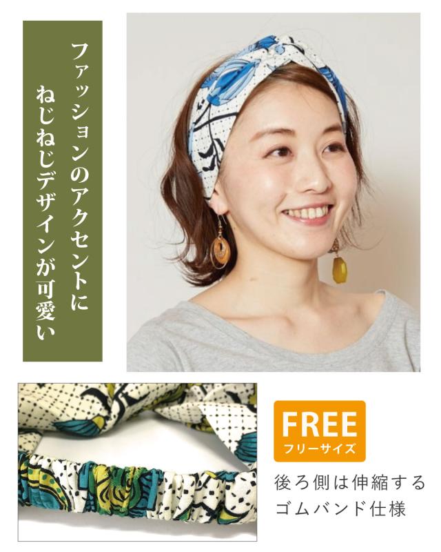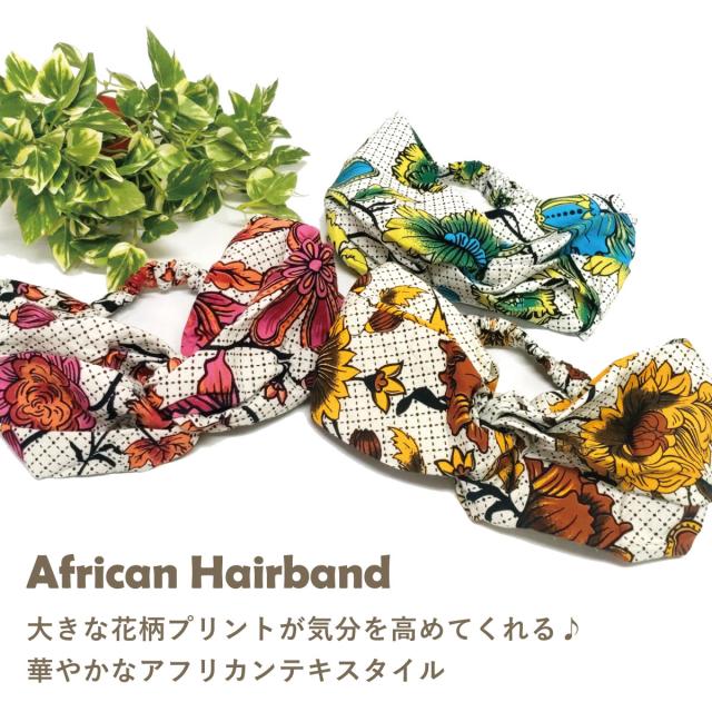 へアバンド 明るくポップなカンガ柄 スカーフ風 薄手 アフリカ ねじねじ ha-447 メール便は送料無料 ヘアアクセ レディース おしゃれ ゴム 伸縮 クロスバンド かわいい 派手 ボタニカル 植物柄 スカーフ 簡単 ねじねじ 時短 室内