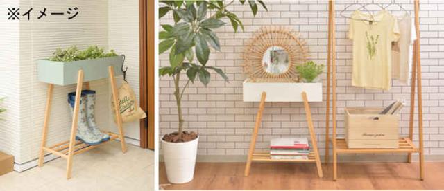 ナチュラルな木と優しい色合いをミックスした、植物をおしゃれに飾れるプランタースタンド。収納として室内でも使うことができます。カラーバリエーション:グリーン(4985155211739/PW-51GR)、ホワイト(4985155211746/PW-51WH)。