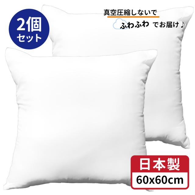2個 ジャンボ 背当て クッション 約 60×60 cm 白 【 ヌード セアテクッション】 【 日本製 】 【 ヌードクッション 】 【 帝人わた 】 【 圧縮してない 】