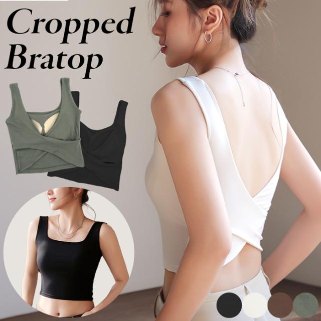 ブラトップ クロップド丈 カップ付き バッククロス タンクトップ 背中見せ ヘソ出し パッド ショート丈 オープンバック トップス おしゃれ セクシー 1290 プレゼント ギフト 母の日 父の日 敬老の日 バレンタイン ホワイトデー クリスマス