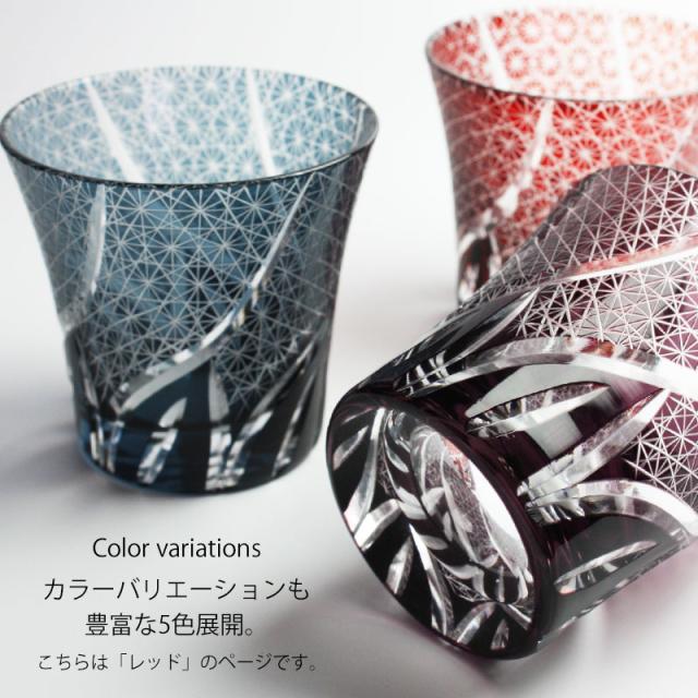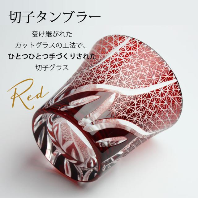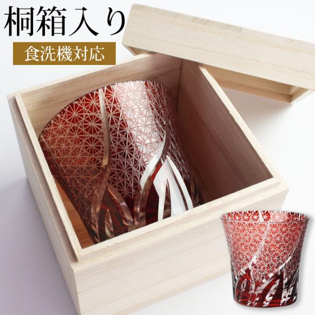切子グラス 桐箱入り 1個 タンブラー おしゃれ ギフト 贈り物 プレゼント 酒器 グラス ガラス コップ ビール 食洗機対応 レッド 赤 菊つなぎ 送料無料 名入れ可能 k_name