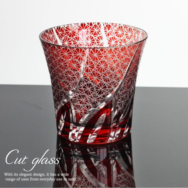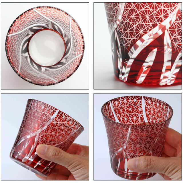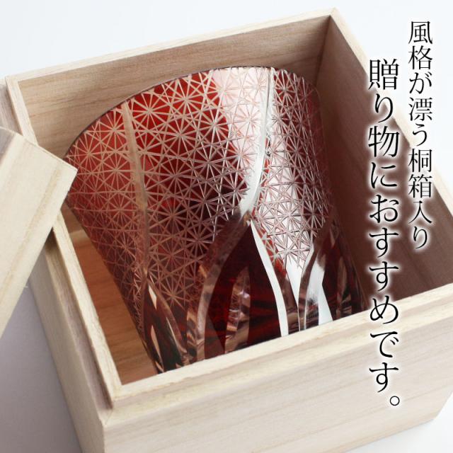 材質:硝子切子グラス 桐箱入り 1個 タンブラー おしゃれ ギフト 贈り物 プレゼント 酒器 グラス ガラス コップ ビール 食洗機対応 レッド 赤 菊つなぎ 送料無料 名入れ可能