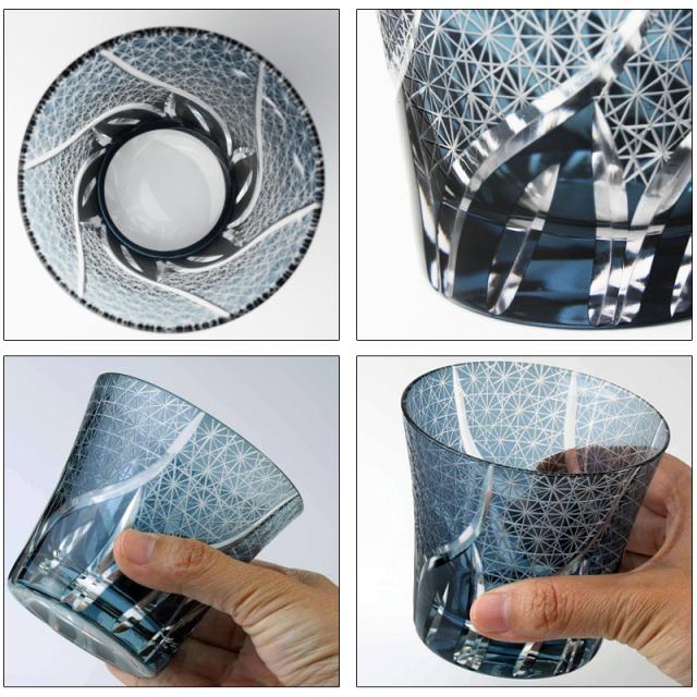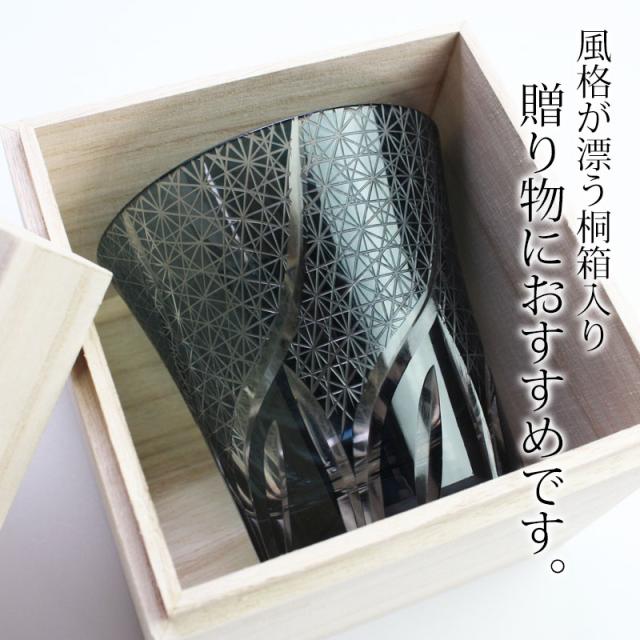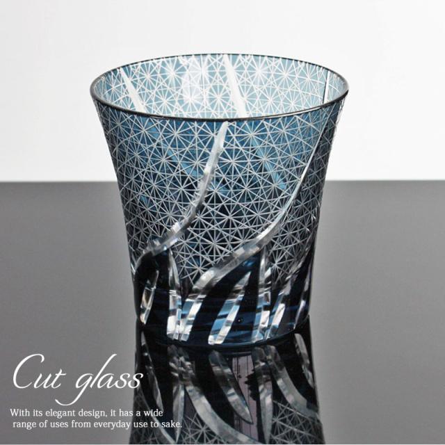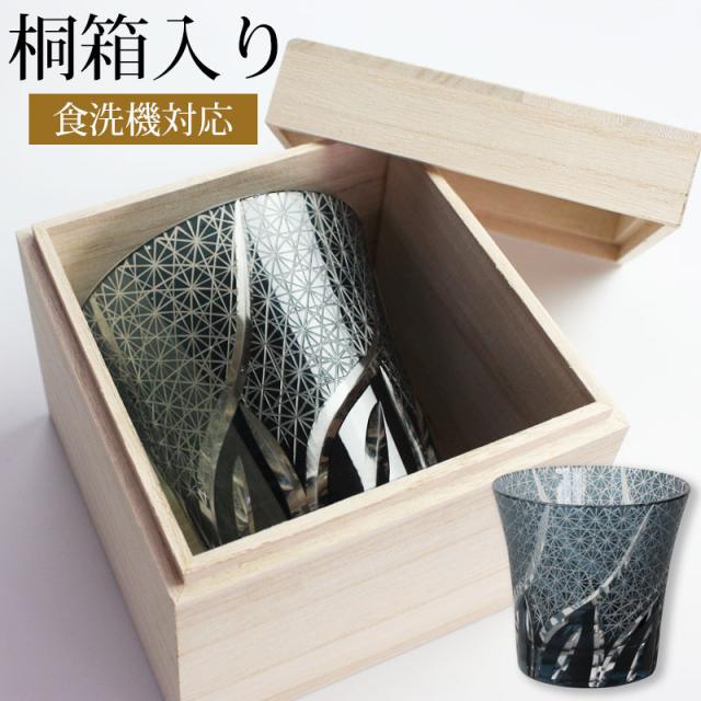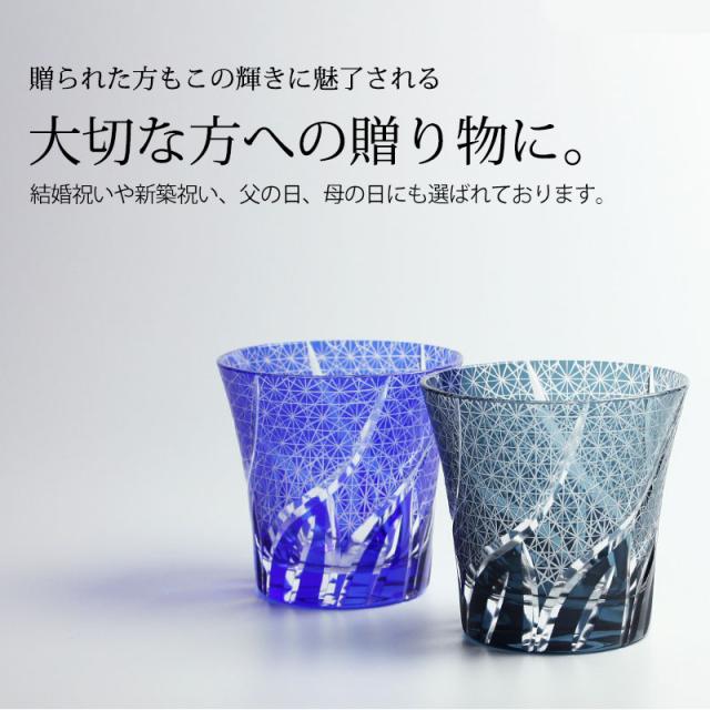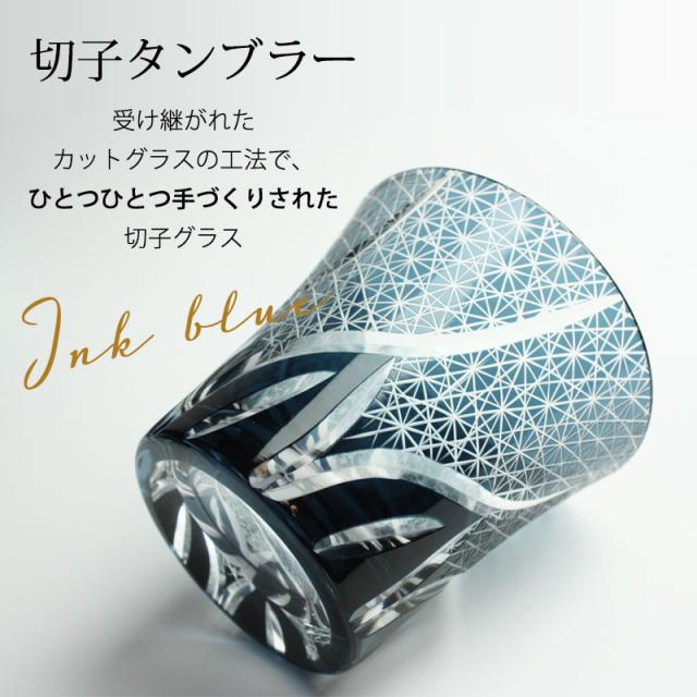切子グラス 桐箱入り 1個 タンブラー おしゃれ ギフト 贈り物 プレゼント 酒器 グラス ガラス コップ ビール 食洗機対応 インクブルー 青 菊つなぎ 送料無料 名入れ可能 k_name