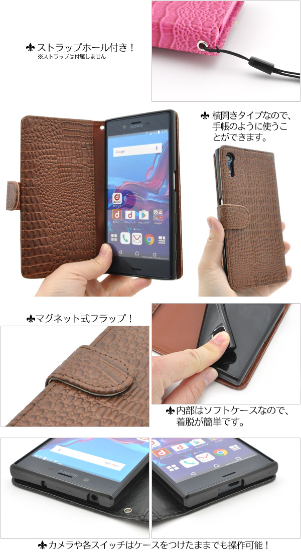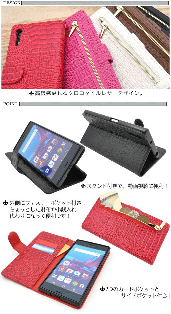手帳型 Xperia XZ SO-01J SOV34 601SO Xperia XZs SO-03J 602SO SOV35 用 アウトレット 訳あり クロコダイル レザーケース 携帯ケース 白