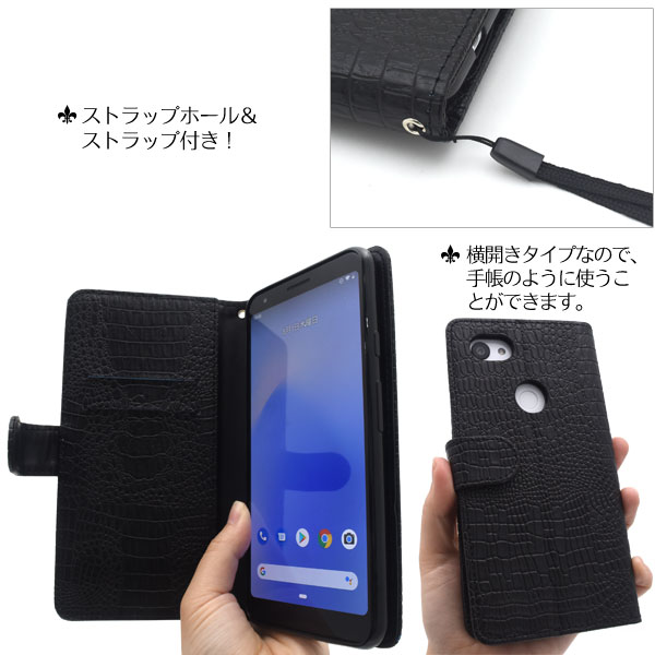 スマートフォンケース Google Pixel3aXL用 アウトレット 訳あり 手帳型 クロコダイルケース ポケット付きデザイン 装着簡単 カジュアル オシャレ 保護カバー スマホケース 横開き Google Pixel3aXL Google Pixel 3a XL スタイリッシュ クロコダイルケース