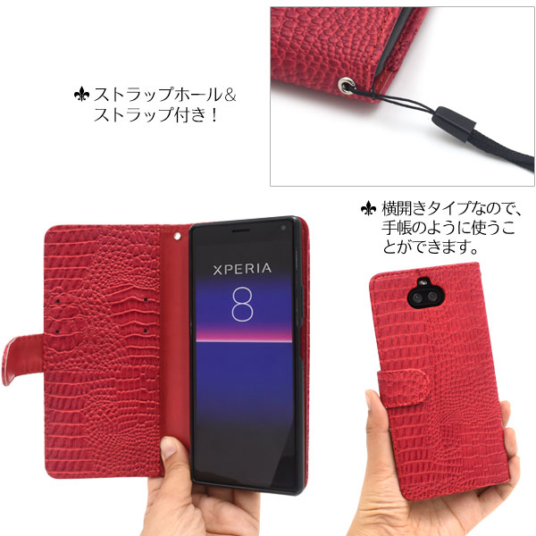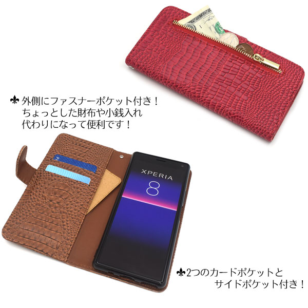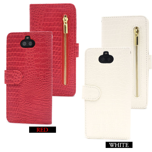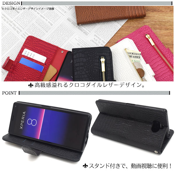 スマートフォンケース Xperia8 SOV42 au Y!mobile UQmobile用 アウトレット 訳あり 手帳型 クロコダイルレザーデザイン お洒落 装着簡単 スマホケース 上品 白 オシャレ カジュアル レディ ガーリー お洒落 携帯ケース スマホカバー おしゃれ 保護カバー